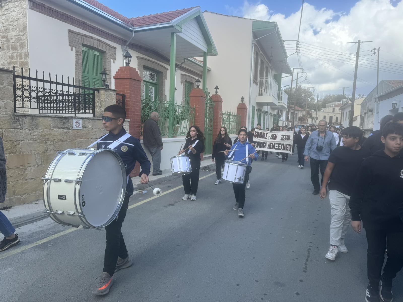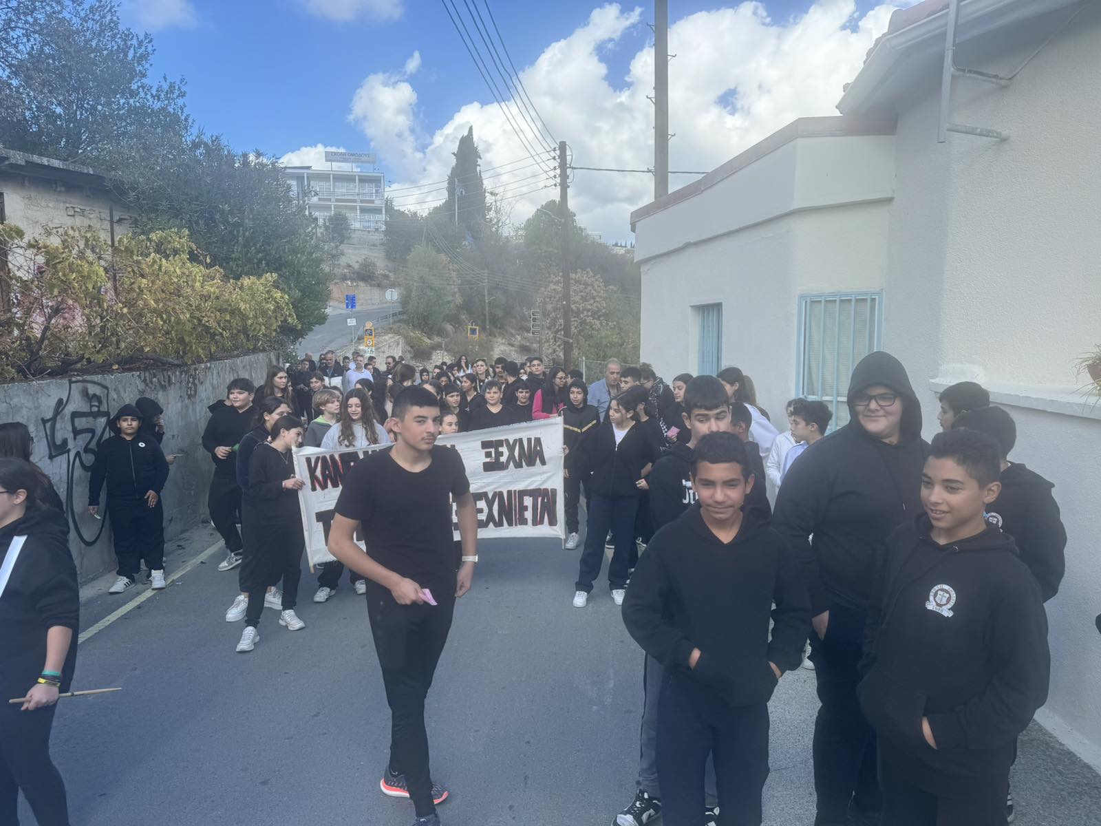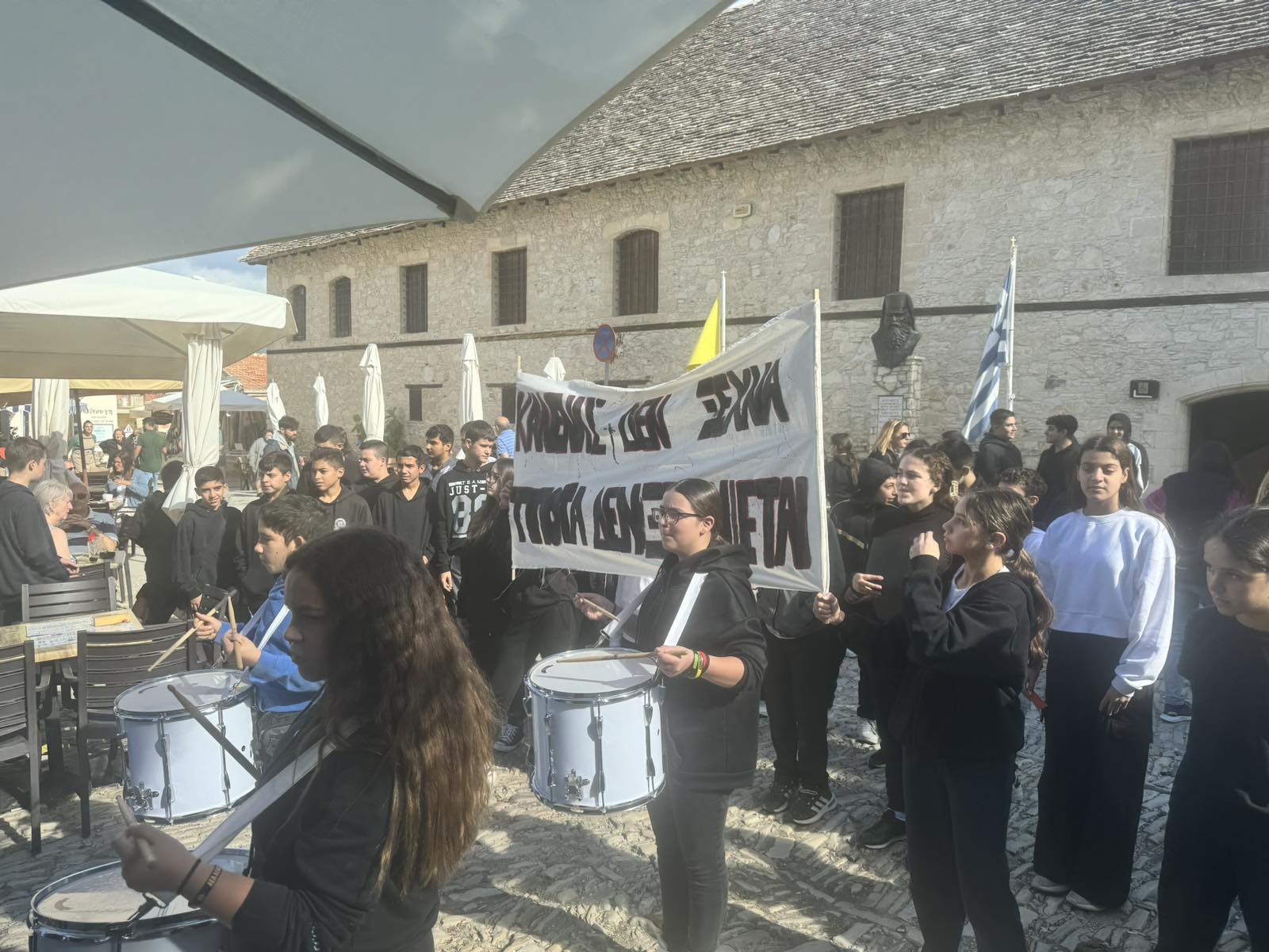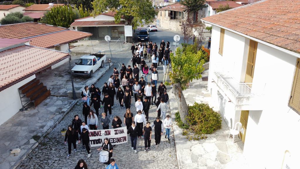 Τα παιδιά μας που φοιτούν στο Γυμνάσιο της Σχολής Ομόδους καταδίκασαν το ψευδοκράτος στην μεγάλη πλατεία του χωριού. Αφού επέδωσαν το ψήφισμα καταδίκης και στον κοινοτάρχη κ.Ευγένιο Μιχαήλ, μοίρασαν διαφωτιστικά φυλλάδια στους επισκέπτες του χωριού και μίλησαν για τη συνεχόμενη κατοχή του βόρειου τμήματος του νησιού μας για πενήντα χρόνια.