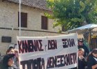 Τα παιδιά μας που φοιτούν στο Γυμνάσιο της Σχολής Ομόδους καταδίκασαν το ψευδοκράτος στην μεγάλη πλατεία του χωριού. Αφού επέδωσαν το ψήφισμα καταδίκης και στον κοινοτάρχη κ.Ευγένιο Μιχαήλ, μοίρασαν διαφωτιστικά φυλλάδια στους επισκέπτες του χωριού και μίλησαν για τη συνεχόμενη κατοχή του βόρειου τμήματος του νησιού μας για πενήντα χρόνια.